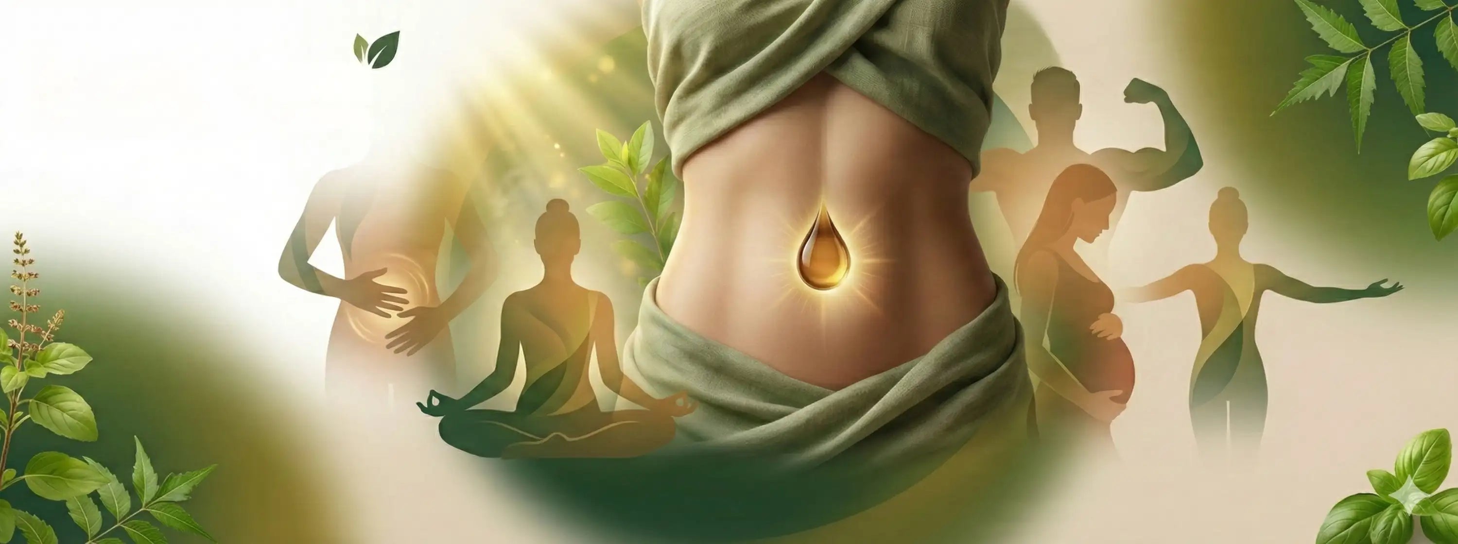 Our oil is specially formulated for navel application, allowing deep absorption that supports your body from within using the ancient Pechoti method.