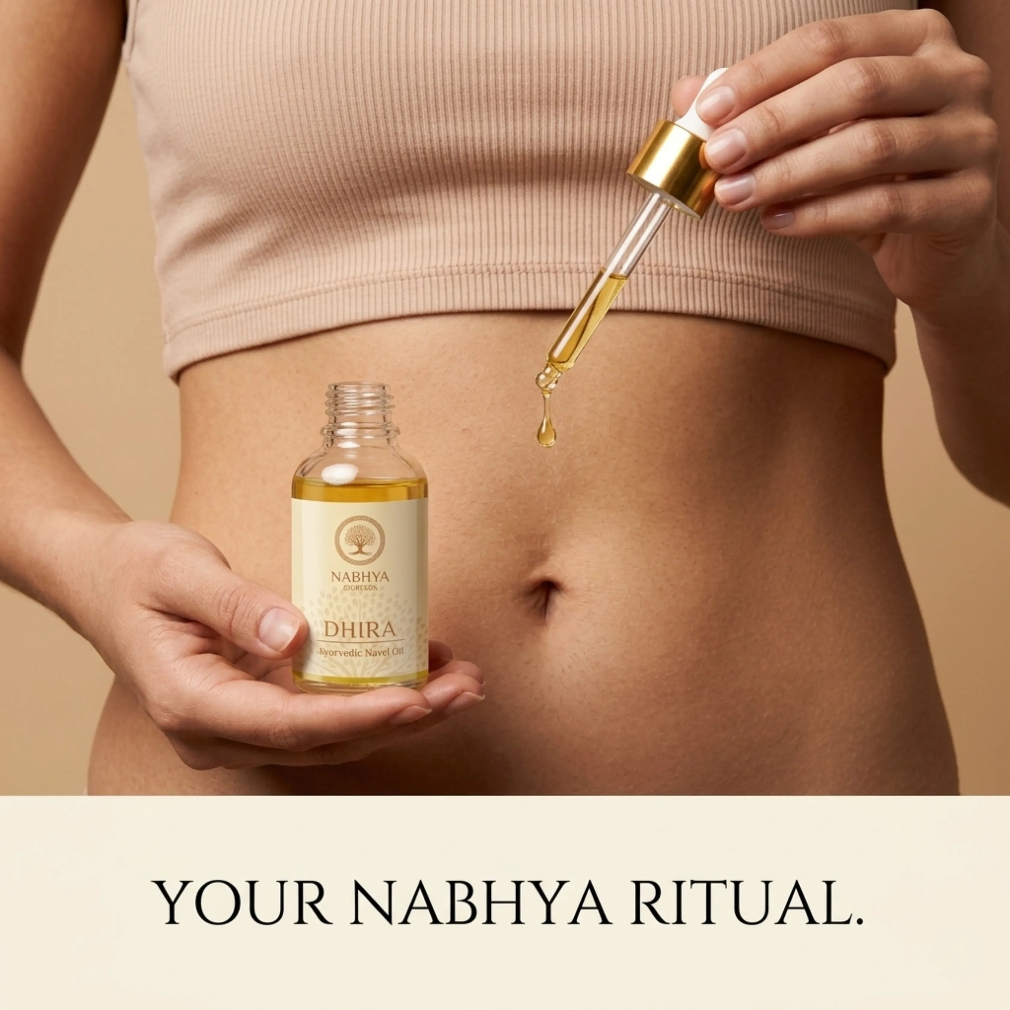 Dhira Ayurvedic Nabhi Oil is applied directly to the belly button to nourish the body through the navel center. Rooted in ancient Nabhi therapy, it helps support detoxification, ease bloating, promote clearer skin, and restore balance so the body feels lighter, calmer, and revitalized from within.